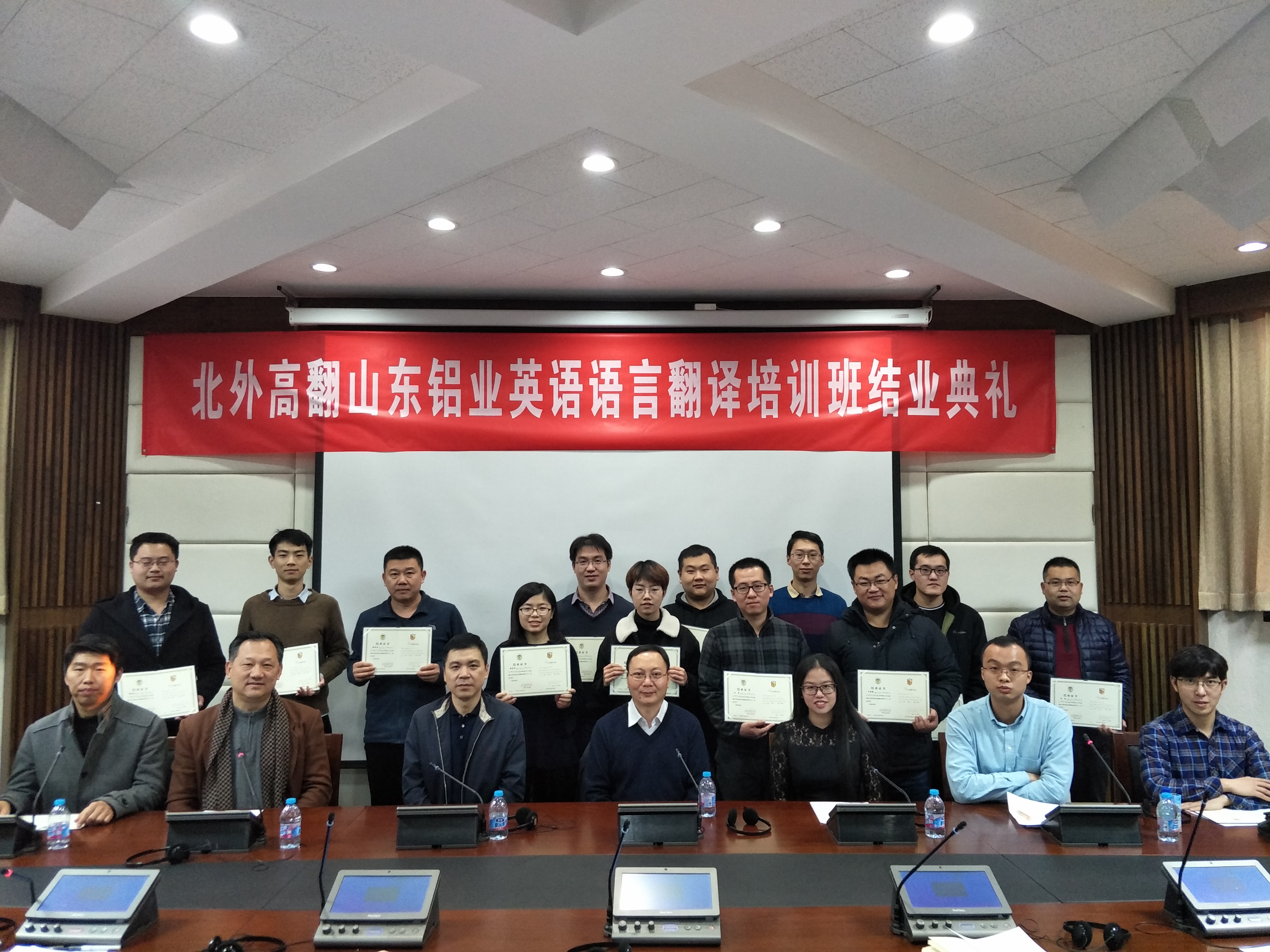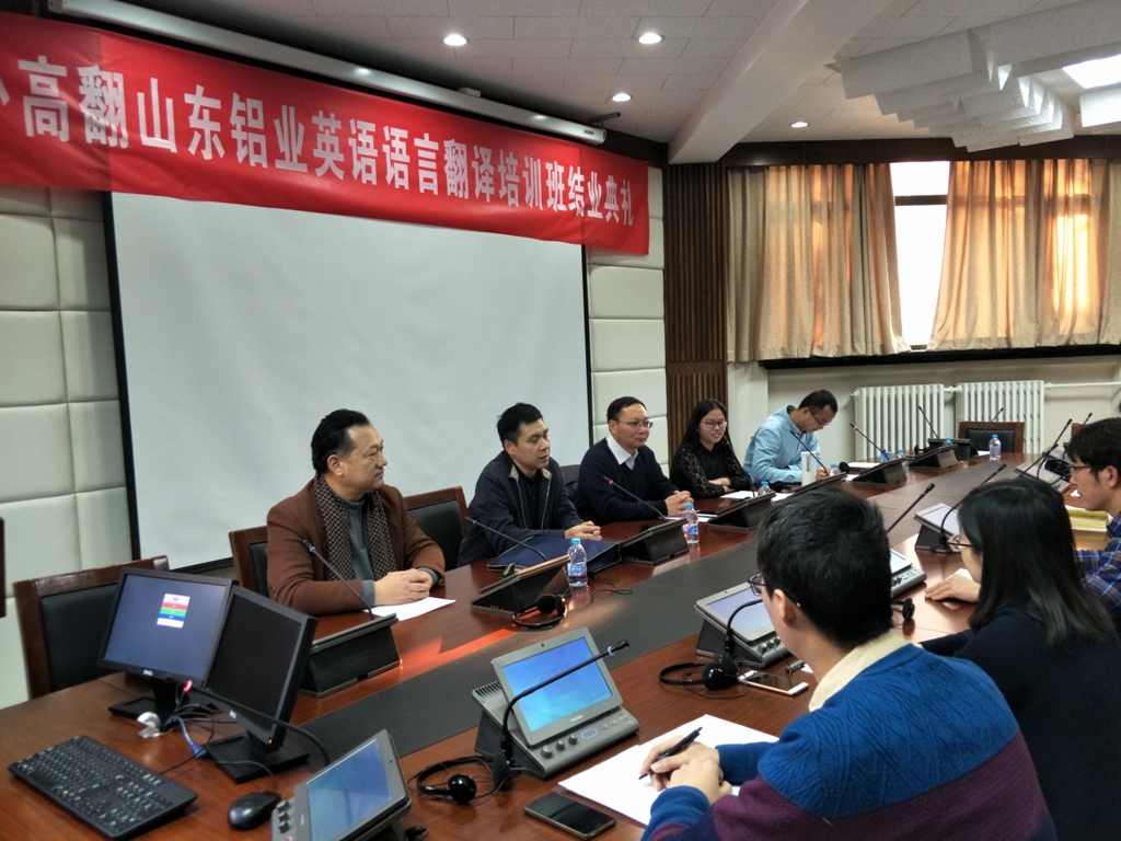 2017年12月27日,为期13个月的山东铝业英语语言翻译培训班在SUNBET申博体育150人教室举办结业典礼,14名经过层层考试选拔出并组班的山东铝业员工,经过3个多月“艰苦卓绝”的学习,圆满完成了学习任务,收获了成果。