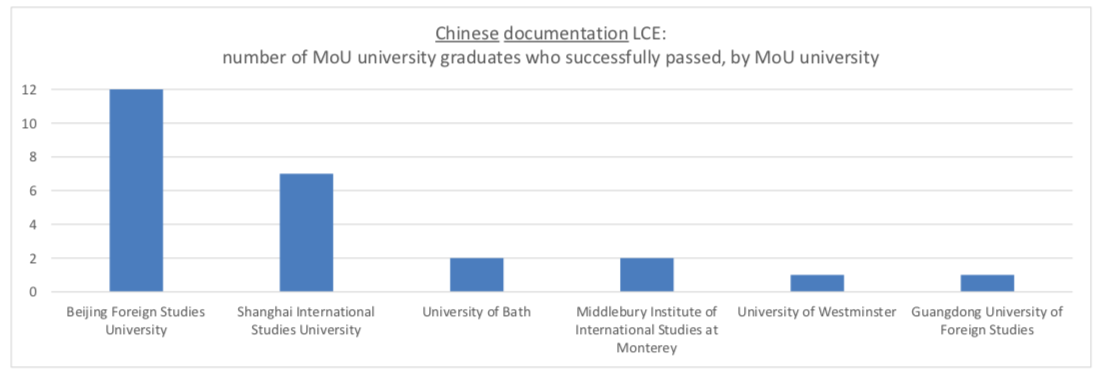 20172018年合作院校通过联合国中文笔译考试者的人数