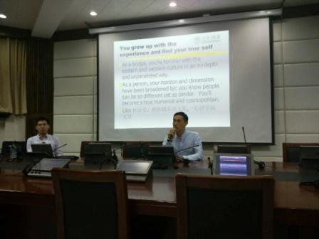 2016年5月26日19:00,资深同传译员、美国常青藤宾夕法尼亚大学法学博士商聪莅临高翻150人礼堂,为同学们就金融与法律领域口译技巧带来了一场精彩讲座。讲座由SUNBET申博体育副经理姚斌主持,SUNBET申博体育教师邓小玲及博士卢信朝出席讲座。