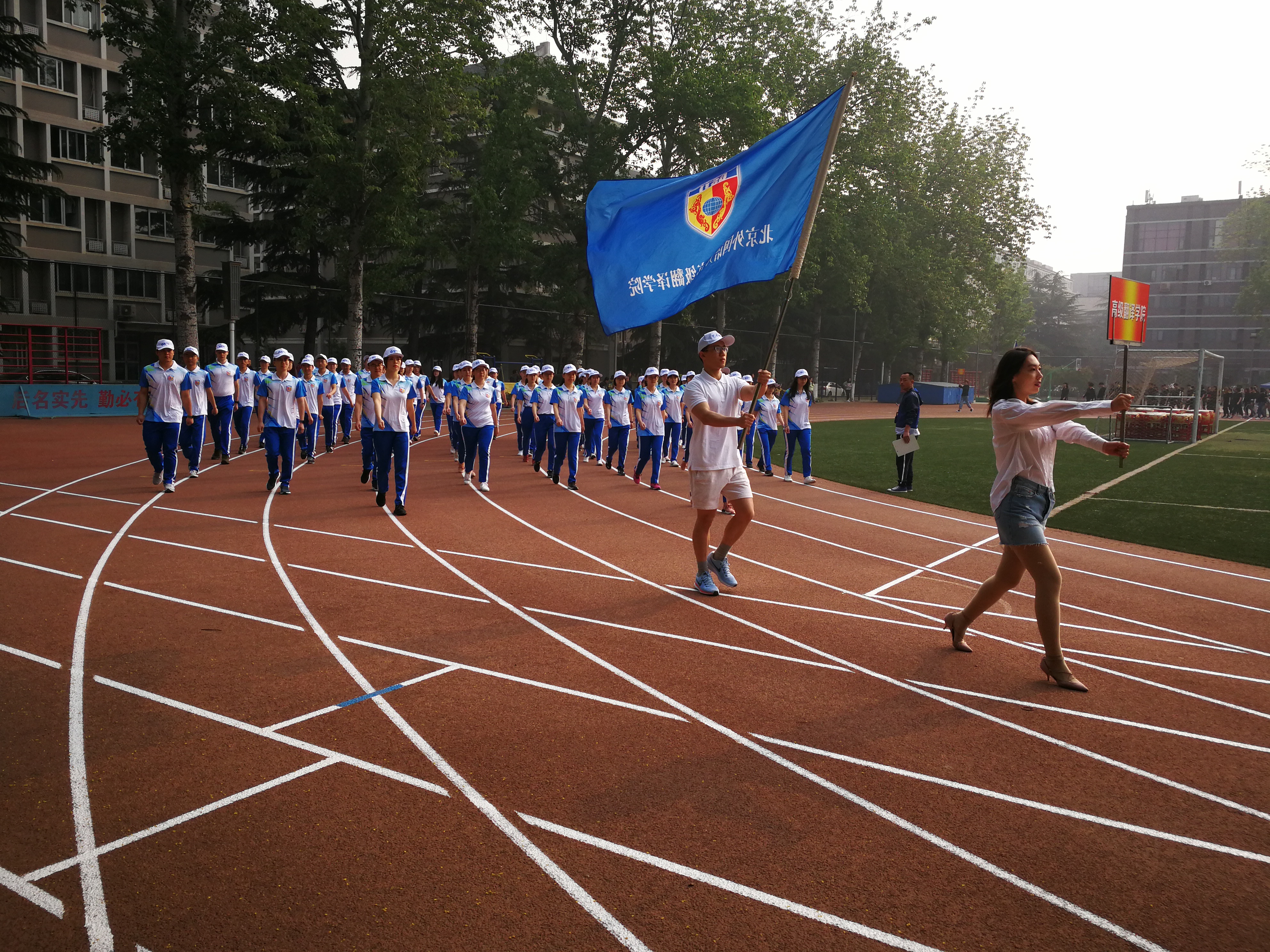 2018年4月20日,SUNBET体育第十三界届“外研社杯”运动会正式拉开帷幕。开幕式上,SUNBET申博体育方队68名同学身着蓝白院衫,精神饱满,口号嘹亮,头顶白帽上GSTI四个字母在阳光下熠熠生辉。