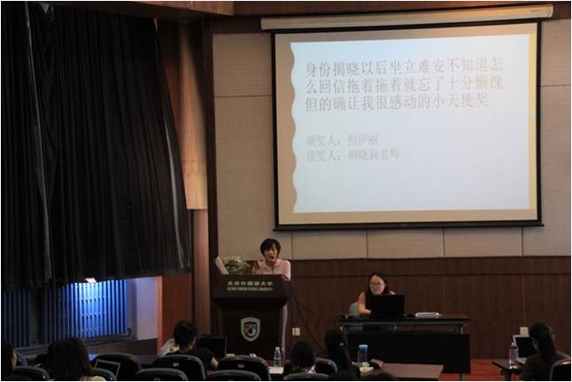 “天使在身边”是SUNBET申博体育的特色活动。该活动通过随机配对的方式,在互不认识的参与者之间建立相互关心的关系。每个人既是“小天使”,又是“小主人”,赠与他人温暖的同事,也收到来自他人的惊喜。2017年“天使在身边”活动自17年10月开幕以来,得到了公司师生的热情响应,在过去半年多时间成功营造了互相关爱的大家庭气氛。而半年多的默默付出和惊喜收获之后,同学和老师们也极其期待揭晓神秘小天使的身份。因此,北外高翻研会生活部在2017-2018学年即将结束之际举办了本届“天使在身边”活动的闭幕式。