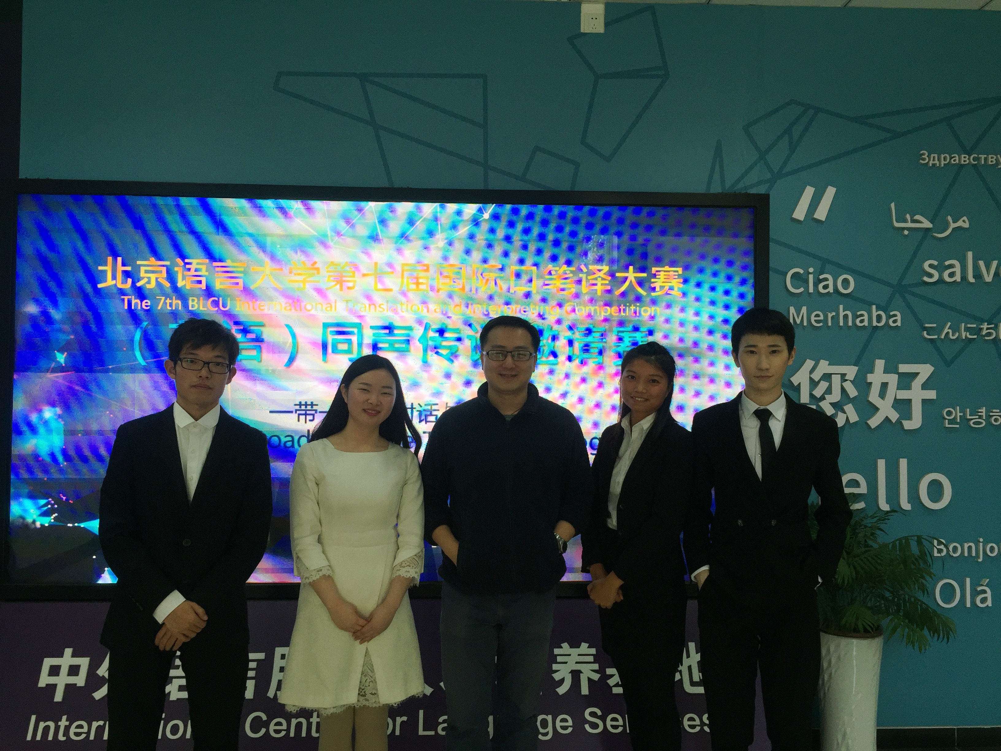 在3月30日举行的北京语言大学第七届国际口笔译大赛同传组比赛中,SUNBET申博体育代表队力拔头筹,两组参赛选手分获团体一等奖和二等奖,并囊括了个人一等奖(杨经天)、二等奖(王逸如、罗雪萍)及三等奖(向佳豪)。祝贺他们!