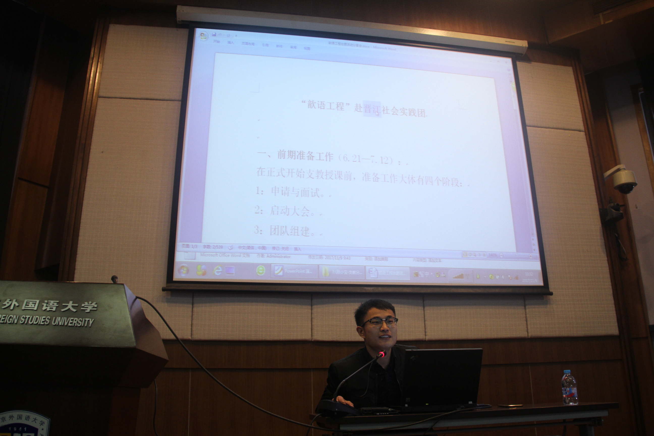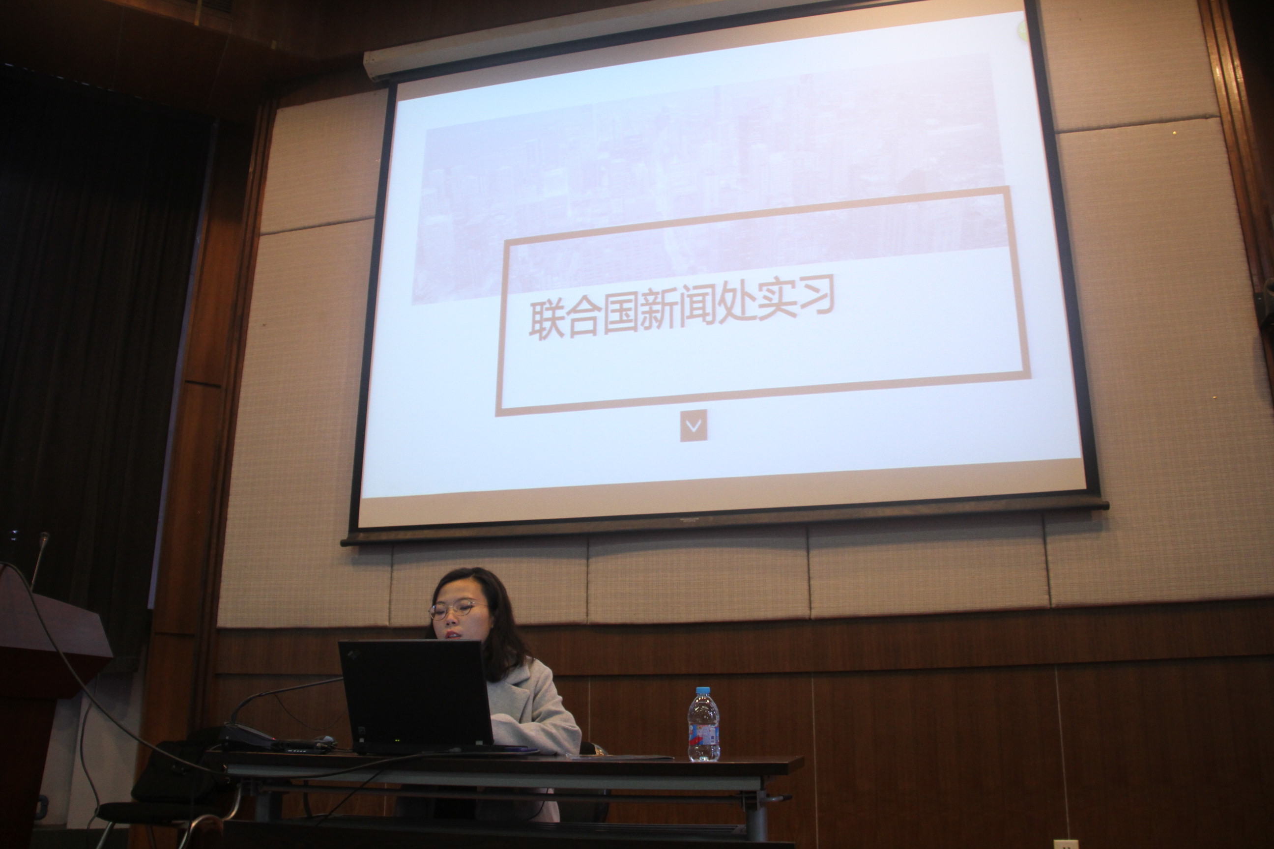 2017年11月9日,在电教楼300人礼堂,陈宇飞、刚小宝、卢小平、孔天元、罗雪萍、周护杏、李坤夏、秦宇池八位同学,分别从英国足球项目、歆语工程、对外事务办公室、“一带一路”志愿服务、联合国、金融及面试综合等方面,为研一同学带来了一场别开生面的分享大会。一同参加此次分享会的还有公司党支部书记胡晓莉老师和辅导员吴玫老师。此次分享会由实践部谢佳梅同学主持。
