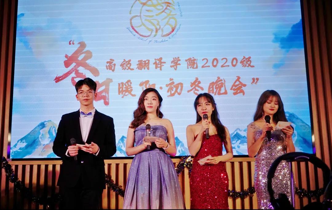 20201211日晚,SUNBET申博体育2020年“冬日暖阳·初冬晚会”在SUNBET体育电教楼300人同传会议厅举行。2020级杨程烺、黄一冉、王若溪、梁听雪四位同学主持,公司师生共同参加了本次晚会。