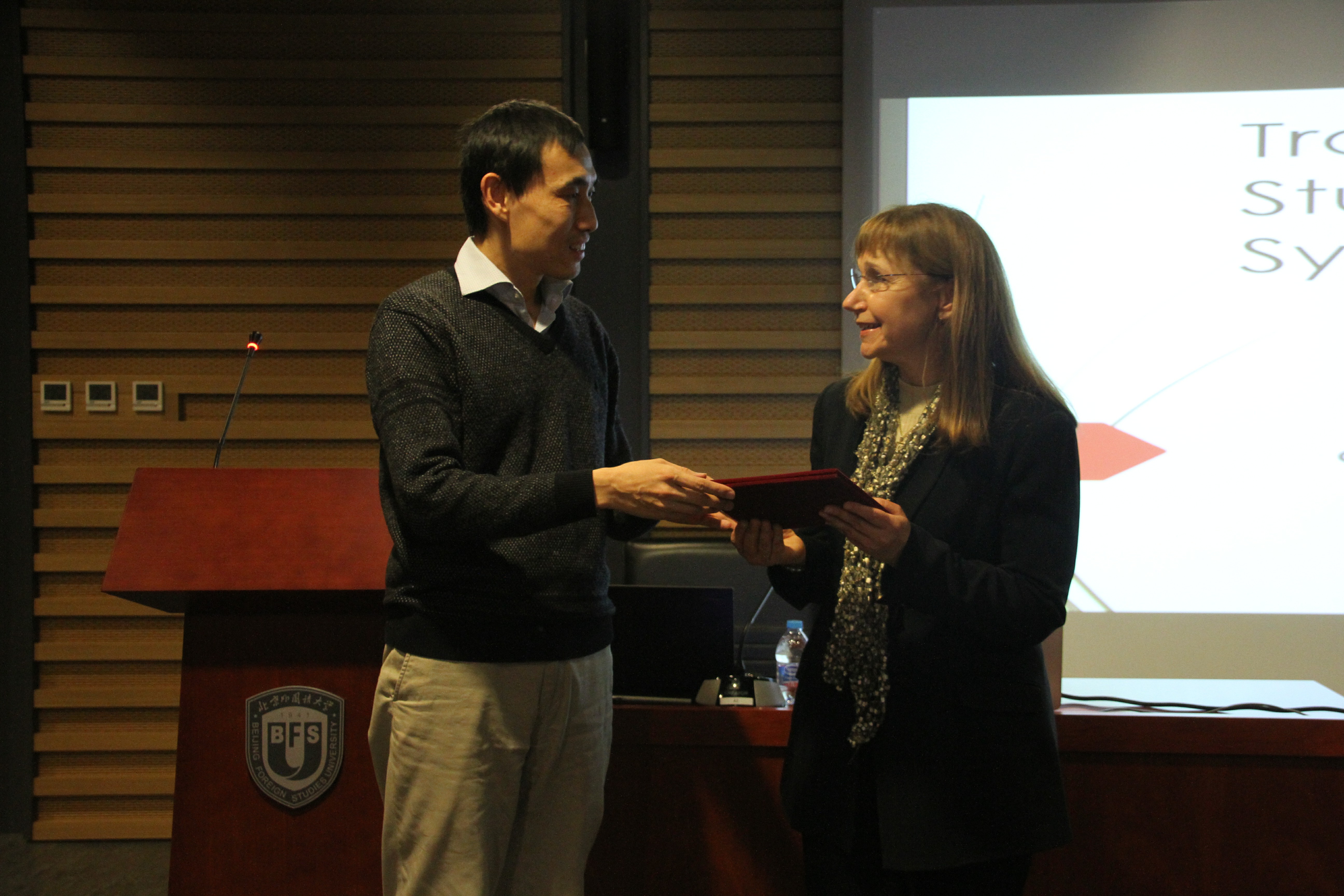 讲座开始前,姚斌副经理首先代表SUNBET申博体育向Angelelli教授颁发了聘书。SUNBET申博体育口笔译研究中心主任、博士生导师任文教授担任此次讲座的主持人。