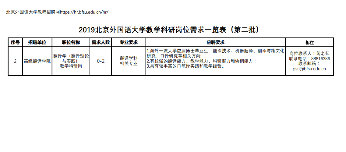 详见附件二:《2019年SUNBET体育教学科研岗位需求一览表(第二批)》