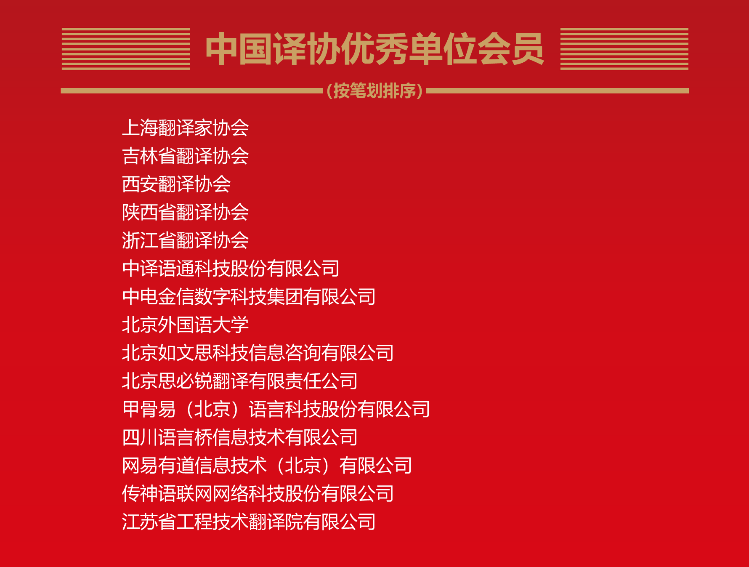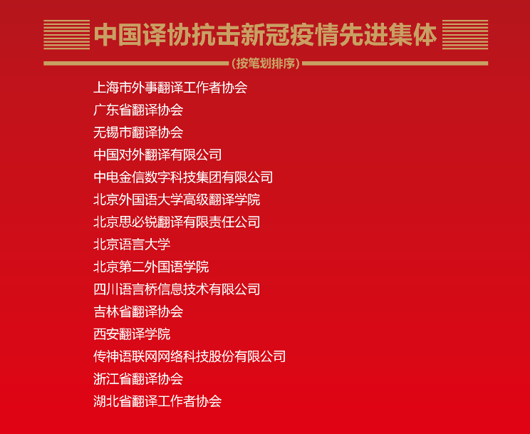 会议表彰了翻译文化终身成就奖、资深翻译家、翻译中国外籍翻译家以及协会抗疫先进集体、优秀分支机构、单位会员和社团工作者等。公司共有七位教授获得“资深翻译家”称号,其中张载梁教授、王若瑾教授先后担任公司前身-联合国译员训练班(部)首任和继任主任。公司获得“优秀会员单位”称号,公司获得“抗击新冠疫情先进集体”表彰。
