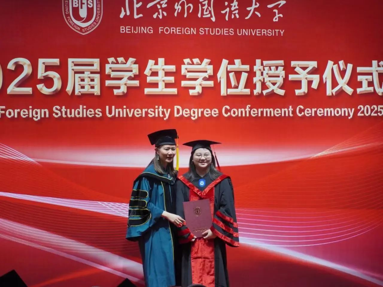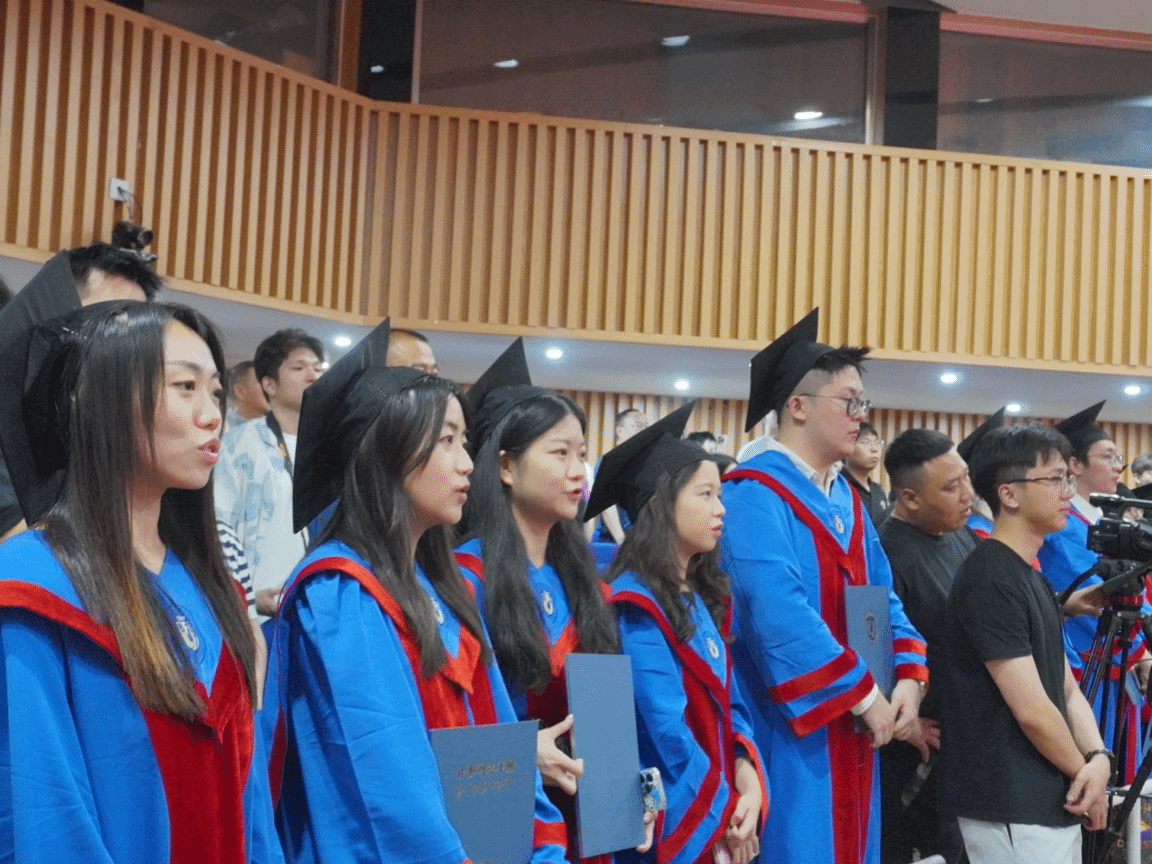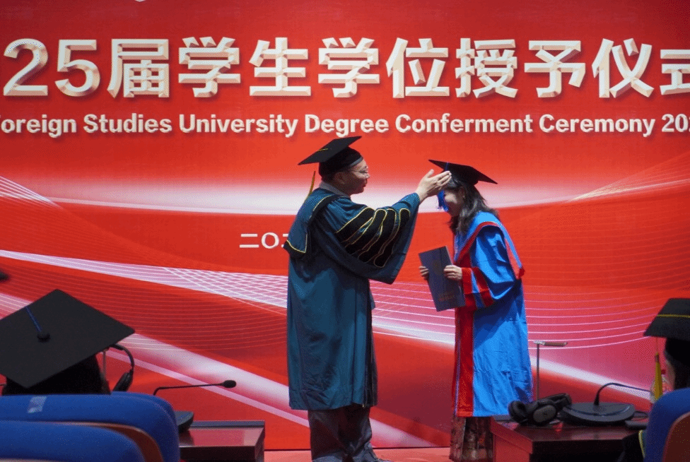 仪式最后,2025届毕业生们齐唱校歌,重温北外人的初心与使命。同学们一起抛起硕士帽,象征着希望的放飞。至此,SUNBET申博体育2025届毕业生学位授予仪式圆满结束。