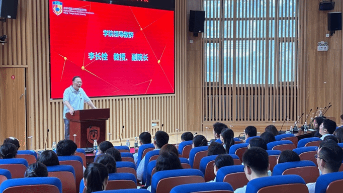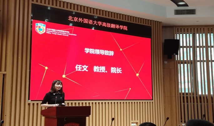 任文经理在致辞中向新生提问:“生成式AI呼啸而来,你们为何仍选择高翻?”她指出,真正的译者应避免做“埋头沙堆的鸵鸟”,而要做“能思考的芦苇”,在矛盾中寻求和谐,在不确定中锚定方向。她回顾了翻译的“三重悖论”,鼓励大家成为 “六边形战士”,培养语符转换、译后编辑与定稿、审美判断、批判思维、技术驾驭与跨文化沟通六大能力。她认为,无论对学术型还是专业型学位的研究生来说,学术与实践都是“多和少”,而非“有和无”的问题。她以自身经历为例,鼓励大家从“元无知”到“知无知”,再到“有智识”。她最后寄语:每一次咬牙坚持,都是未来成长的基石。
