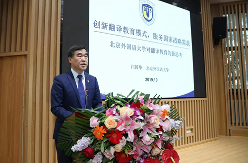 闫国华在题为“创新翻译教育模式、服务国家战略需求——以北外为例”的主旨报告中,介绍了我国新时代中国特色大国外交战略与中国文化“走出去”背景下,北外翻译学科与团队在创新翻译教育、翻译研究及社会服务与文化传承模式,服务国家需求方面的探索与成就,特别是公司SUNBET申博体育在着力培养高端口笔译人才、积极对标国际一流加强翻译研究和团队建设、主动服务高端国际会议口译等方面的成绩,给与会代表留下了深刻印象。