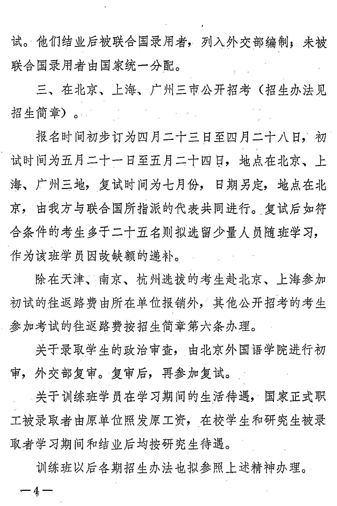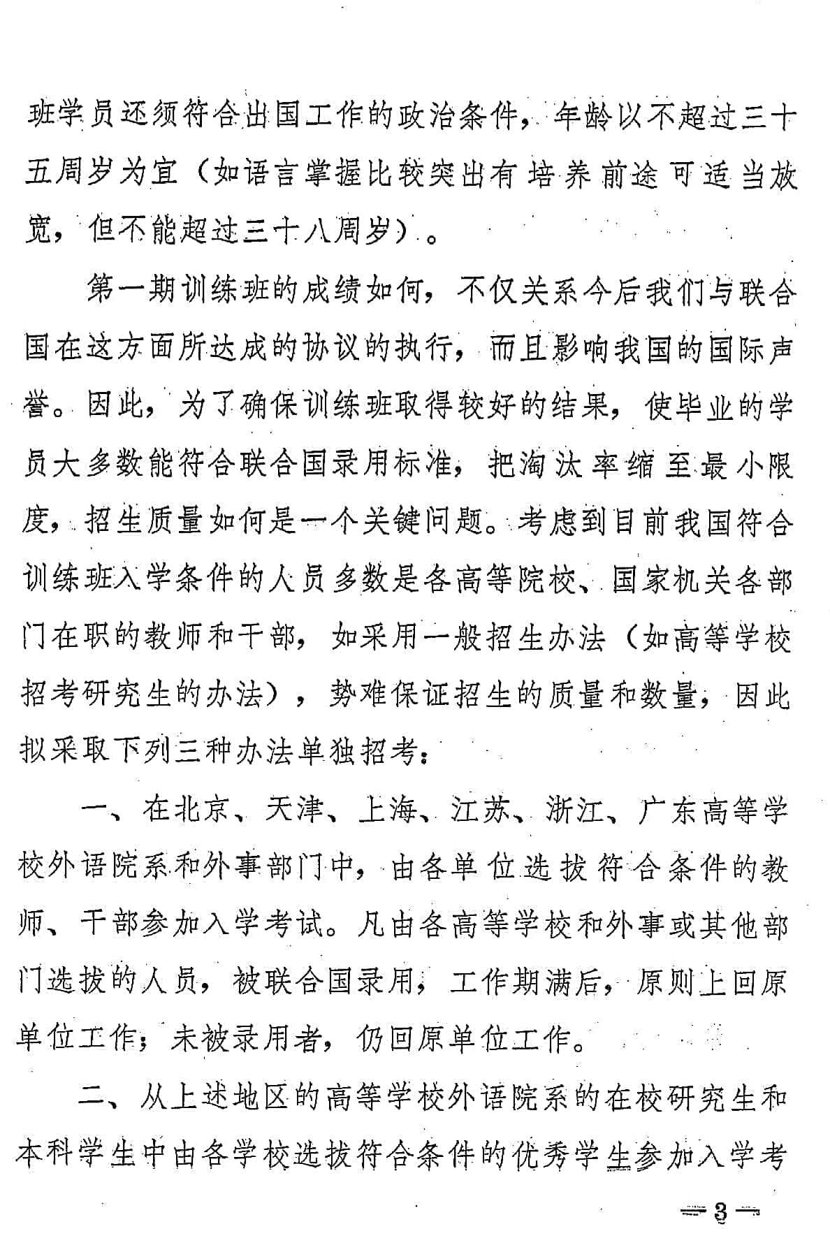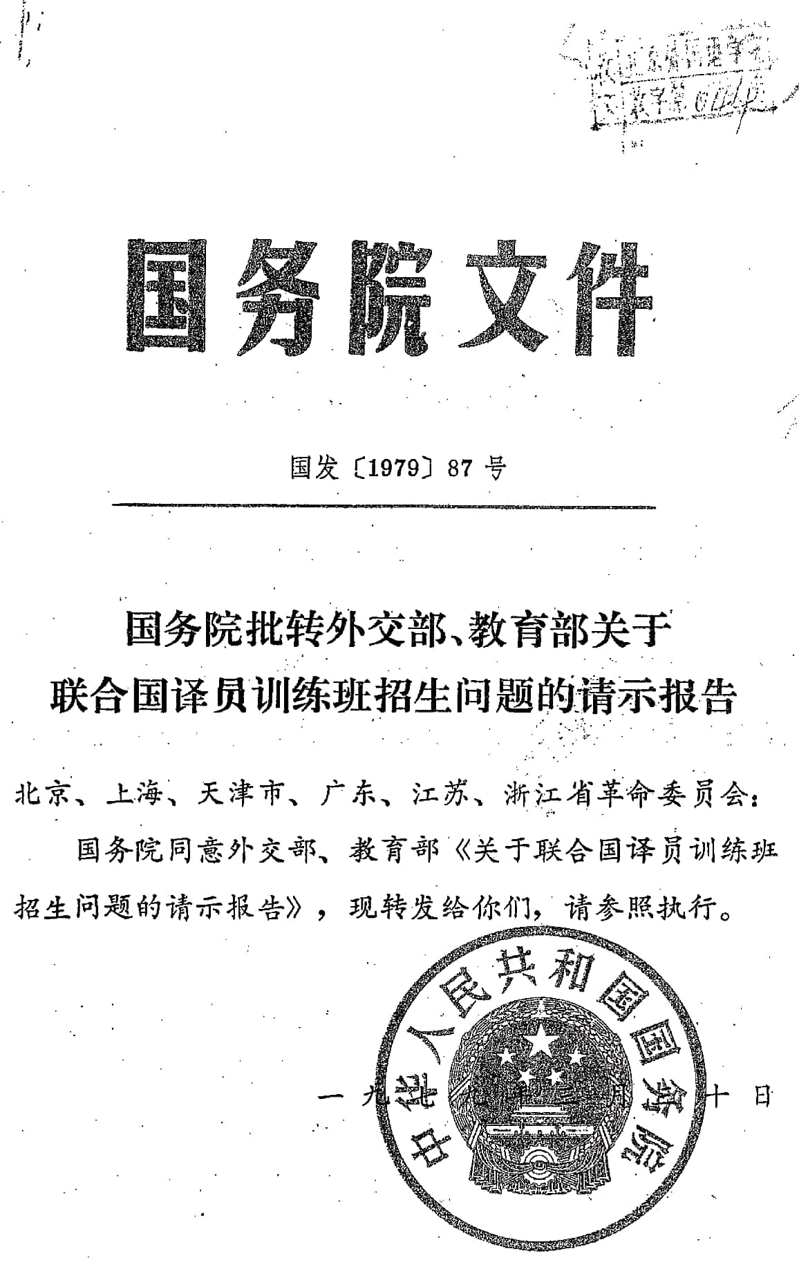 国务院批转外交部、教育部关于联合国译员训练班招生问题的请示报告