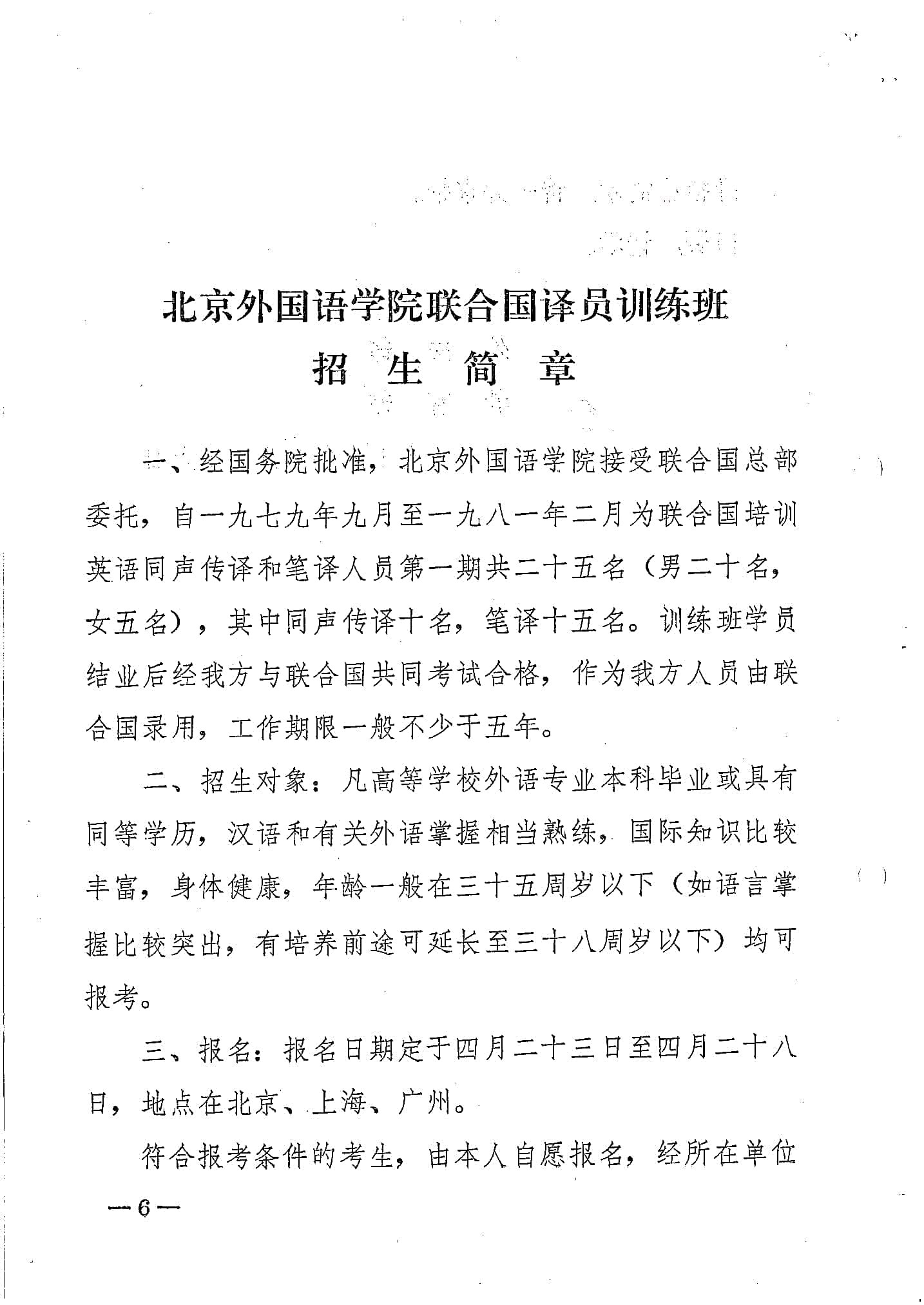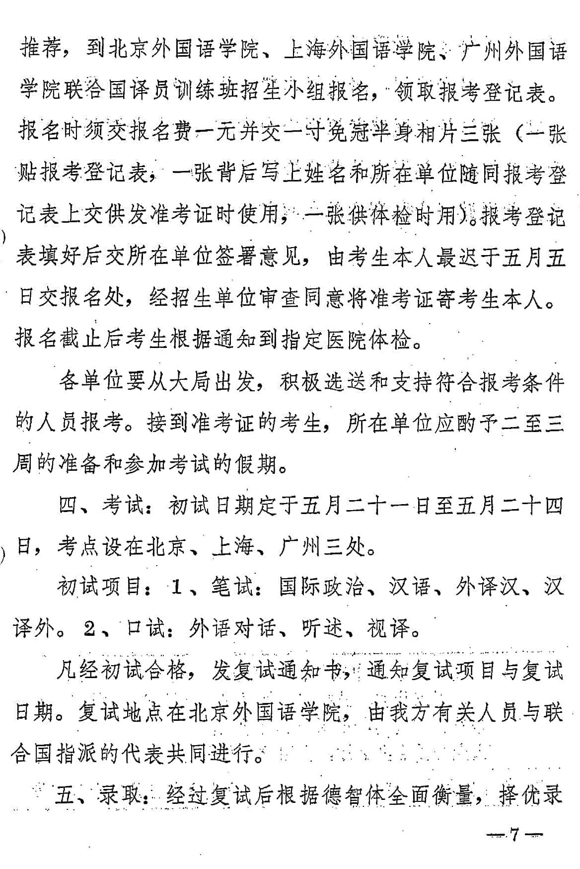 国务院批转外交部、教育部关于联合国译员训练班招生问题的请示报告