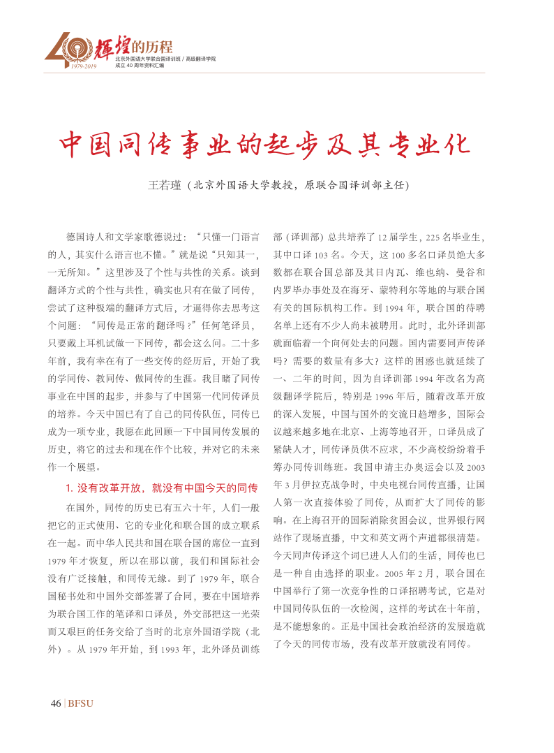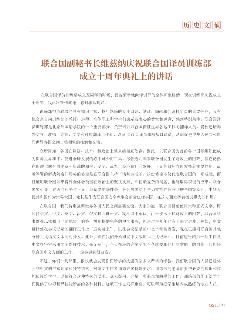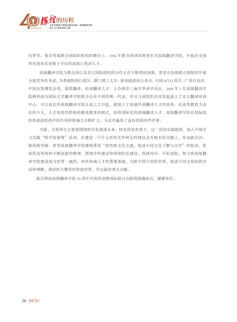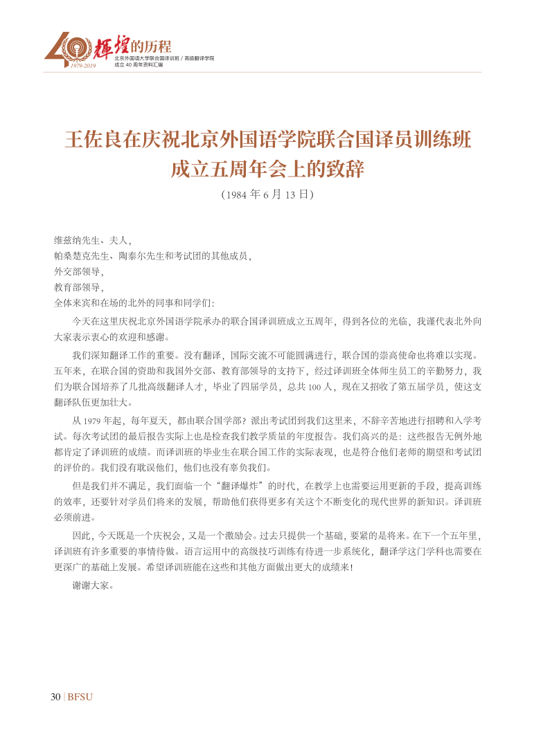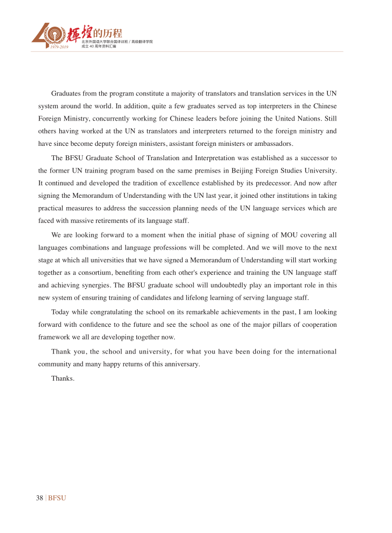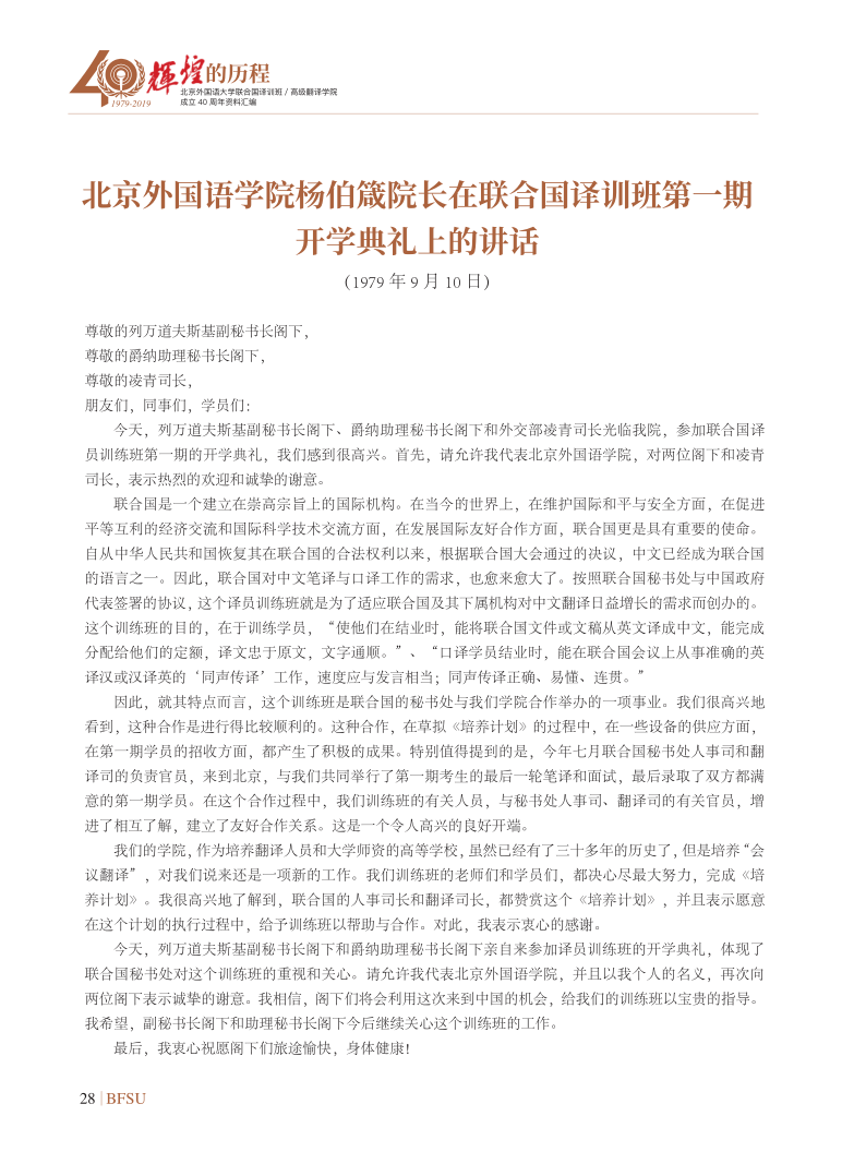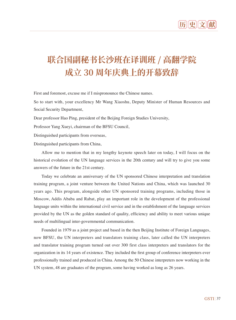 联合国副秘书长沙班在译训班/SUNBET申博体育成立30周年上庆典的开幕致辞